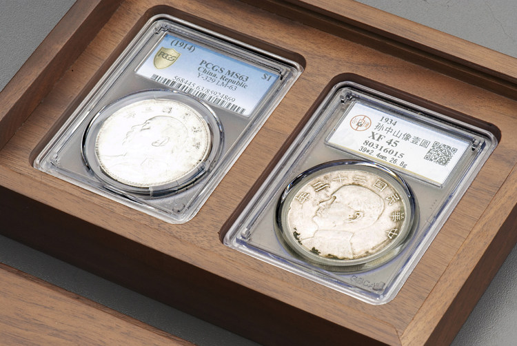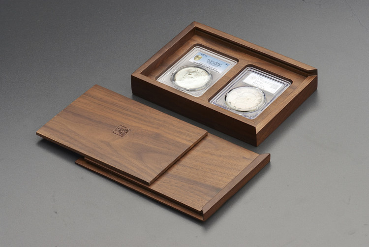 Old Money Zhuang Black Walnuts Horizontal Double-fitting PCGS solid wood coin collection box