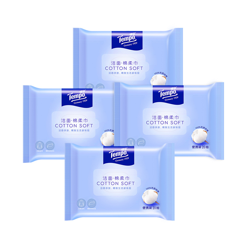 (Gu Jia Tongan) Tempo dry and wet double-use towel cotton soft towel disposable wash face towels 20 draw 4 packs