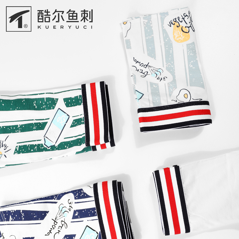Cool fish Spurs Lest handsome T neutral full cotton wide edge underpants printed creative four-corner pants female large size triangular safety pants
