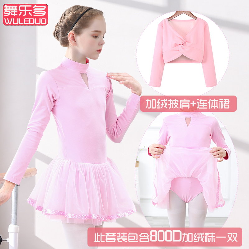 Children's dance clothes autumn and winter long-sleeved turtleneck dance clothes girls Chinese dance children's ballet one-piece training clothes
