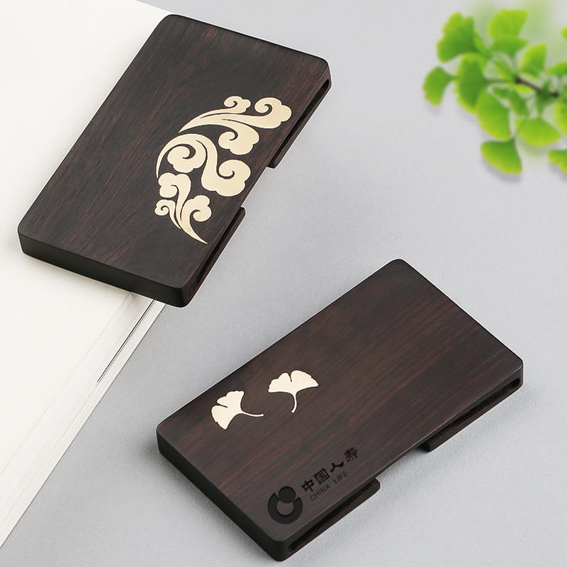 China Wind Retro Refined Women's Style Desktop Custom Loo Name Sheet Box Men Personality Creative Fashion High-end Wood-style Portable Business Name Sheet Clip Solid Wood Card With the box