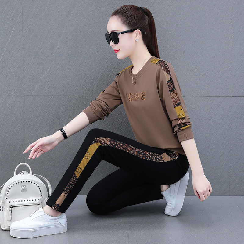 Cotton sports suit women's spring and autumn 2021 autumn new middle-aged mother Western style casual clothes sweater two-piece set