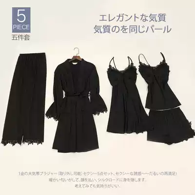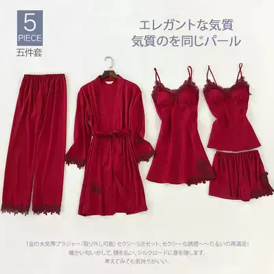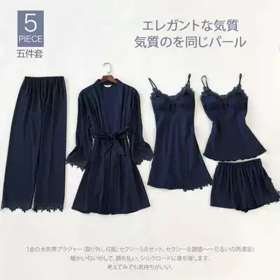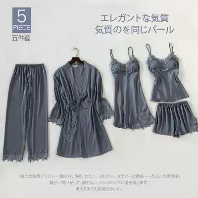 Pajamas female summer ice silk Sexy Hot Adult Spring and Autumn long sleeve thin women's nightgown five sets