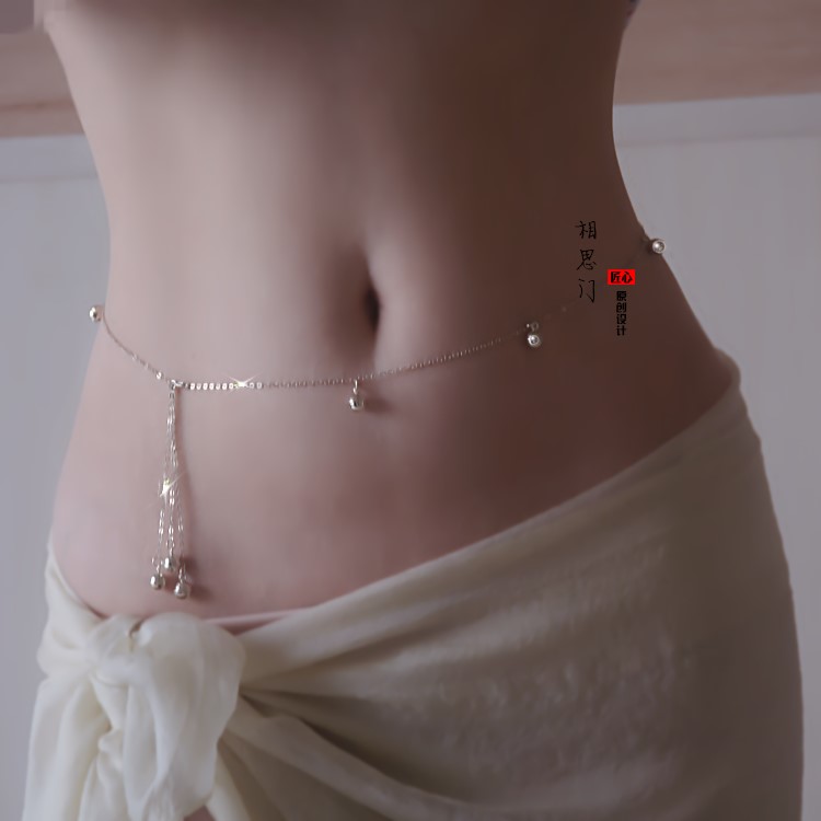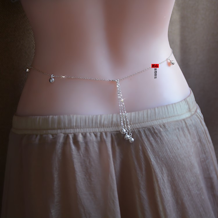 Full silver waist chain Peach Blossom Wan Career Bell Streaming Sufox Waist Chain Belly dance Sexy Body Chain