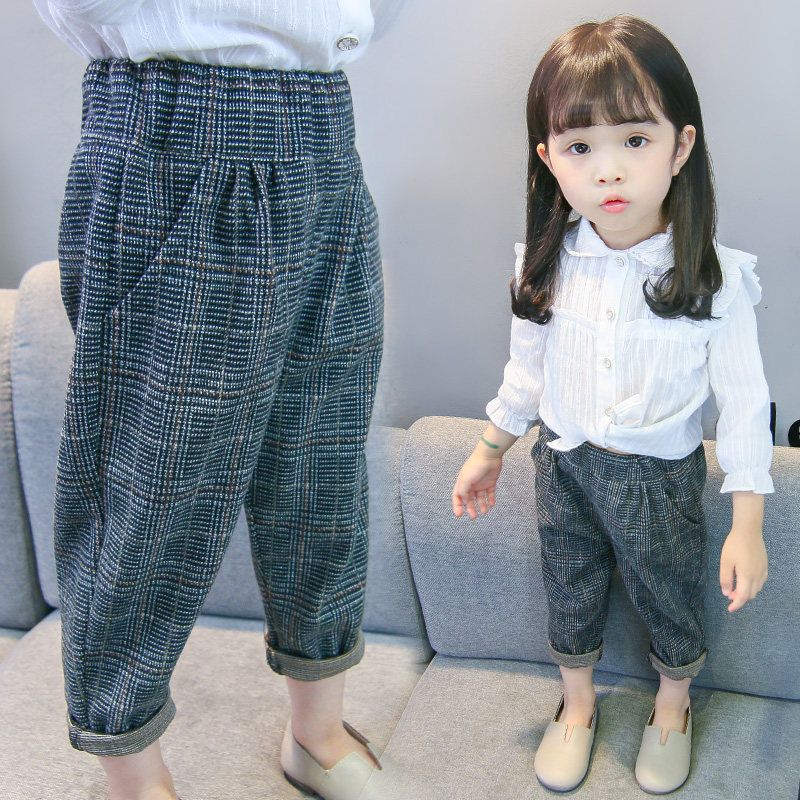 2022 New Girls Spring and Autumn 1 Plaid Trousers 3 Korean Baby Girl Harem Pants 2 Fashion Western Casual Pants 4 Trendy