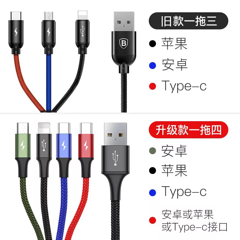 Multiple Sithone Drag more than three According to Line One Drag Four Charging Line Three-in-One Applicable to Xiaomi Apple iphone Bull Type-C Anjo Mobile Phone Huawei Fast-Charging Multifunction 3-Head Portable Four-in-One