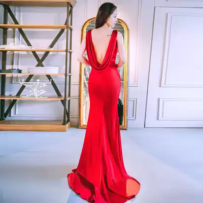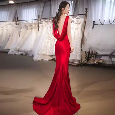 Toast Bride 2021 wedding new red backless sexy evening dress Party party engagement long slim dress