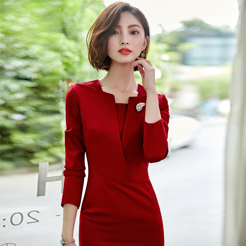Career Suit Women Fashion Temperament Van Hotel Front Desk Beauty Salon Jewellery Shop Working Long Sleeve Foreign Dress