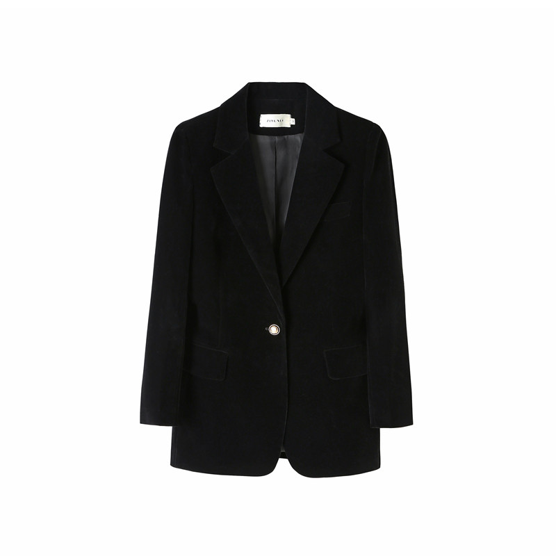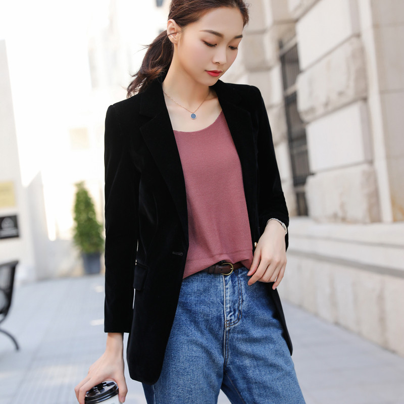 Women's velveteen jacket 2020 spring small western-fitting mid-length slimming commuter casual long-sleeved suit jacket trendy