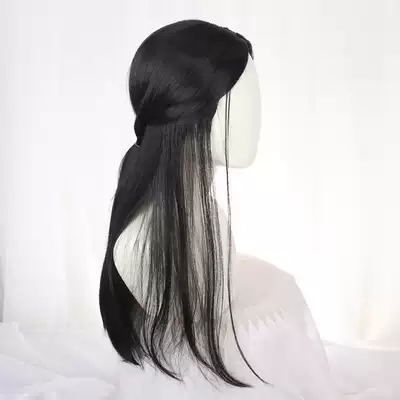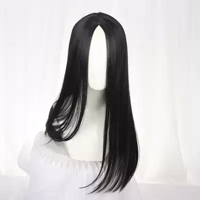 Mid-point wig long straight hair girl round face invisible no trace face repair face middle point full head cover Korean straight hair fake hair