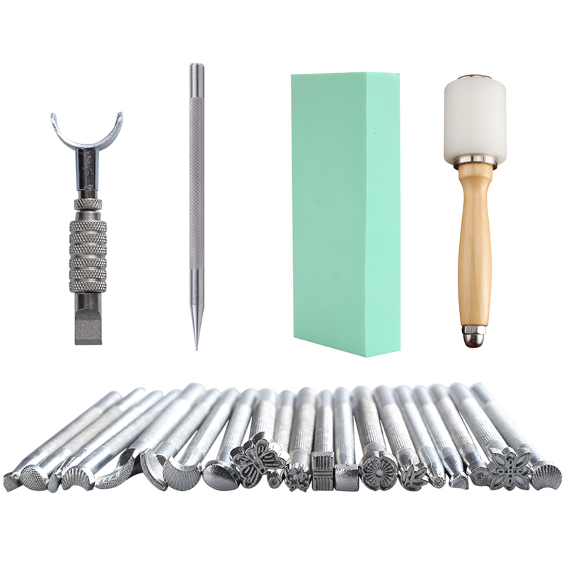 Leather engraving suit 5201 rotary engraving knife 4011 log leather carved hammer 4068 iron pen leather carved sponge 20 printing tools
