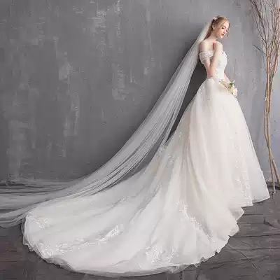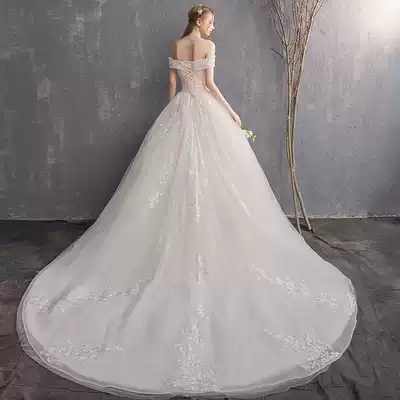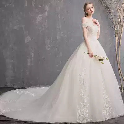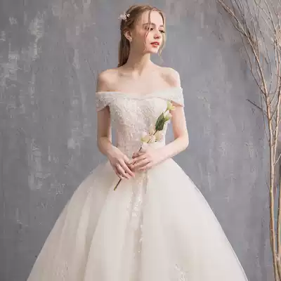 One-word shoulder main wedding dress 2021 New temperament bride Starry Sky simple French pregnant woman summer little tailed light