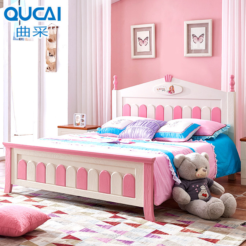 Solid wood children's bed girl princess bed 1 2 m 1 5m single Korean garden children's room furniture combination set