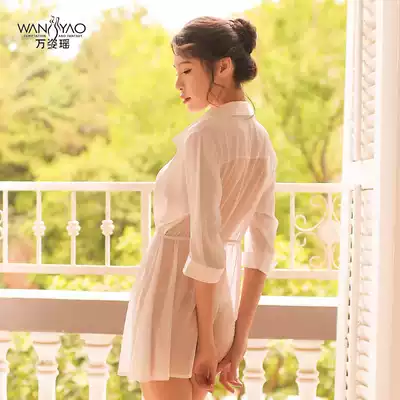 Wan Ziyao sexy pajamas women's summer lace night dress ice silk deep V sex underwear temptation thin short skirt home service