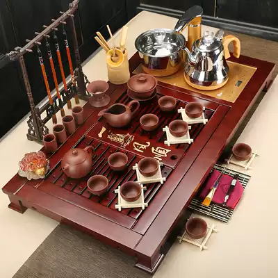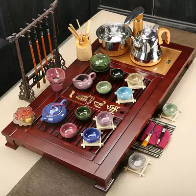 Ren gu tea set set home simple modern solid wood tea tray tea table kung fu automatic induction cooker tea ceremony set