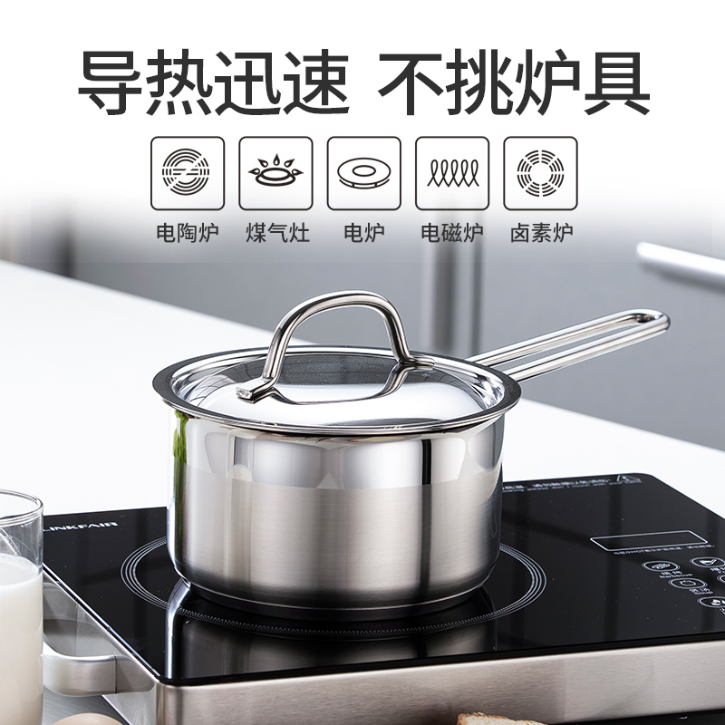 Lingfeng 304 stainless steel milk pot Baby baby food pot Household small pot noodle pot Gas induction cooker universal