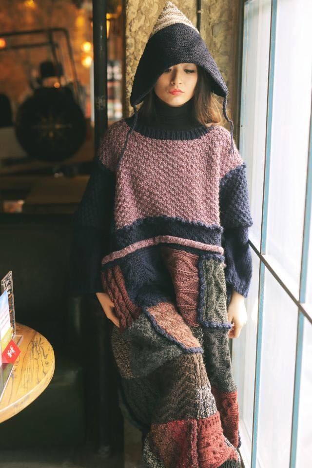 Take tea to ~ original art Fan retro pure handmade personality Knitted Design Sensation Hat Hair Accessories