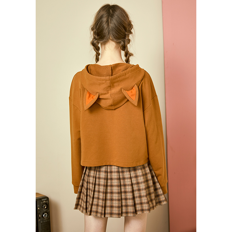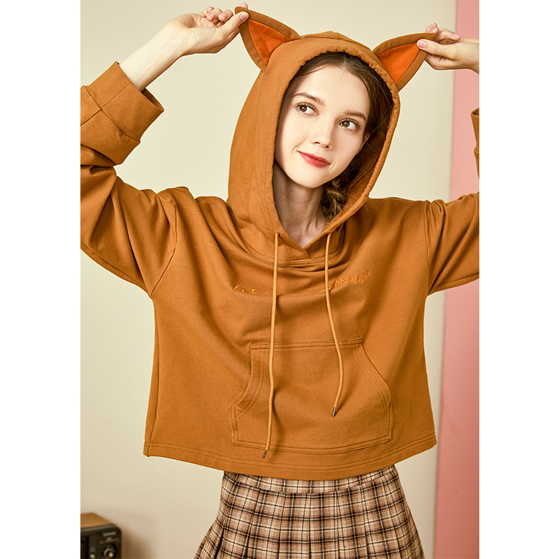 linjou lingjiu 2021 new cat ears hooded sweater women's short hooded ins tide top autumn new