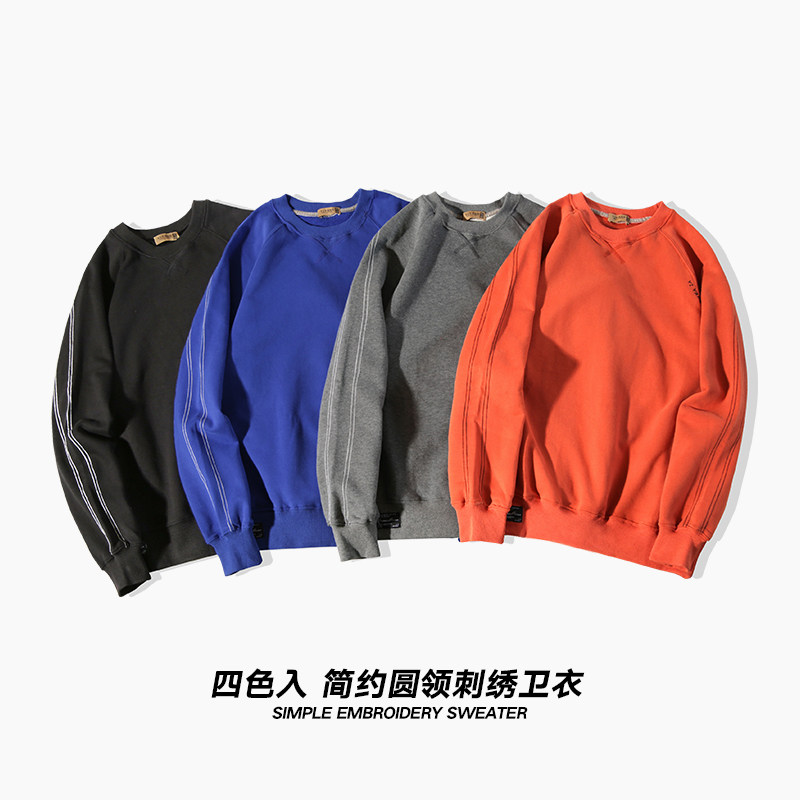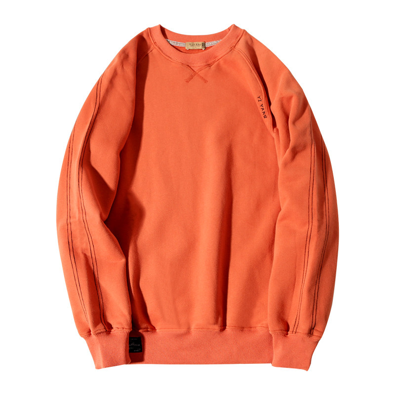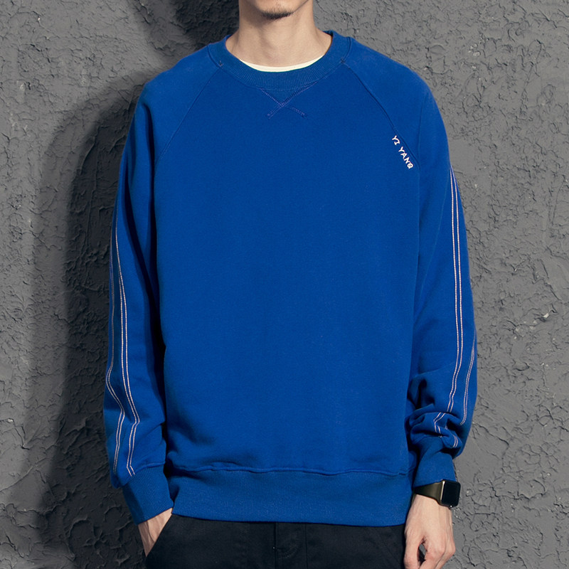 Yi Yangji top line round neck simple men's thick T-shirt trend loose spring and autumn style fleece sweater boys autumn top