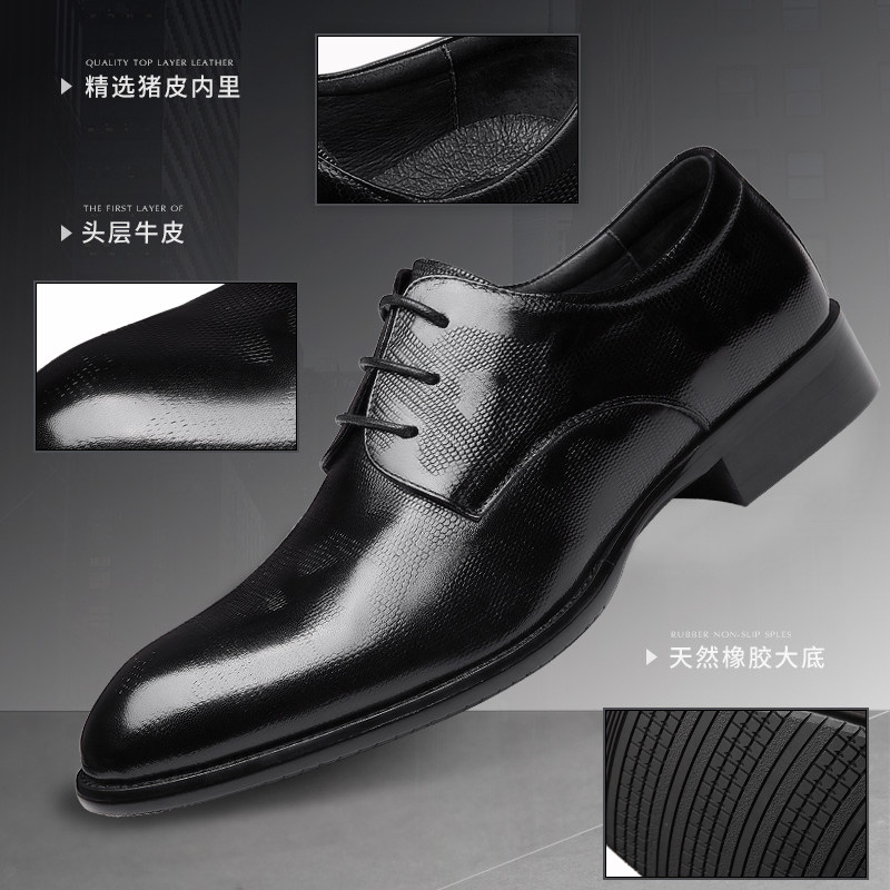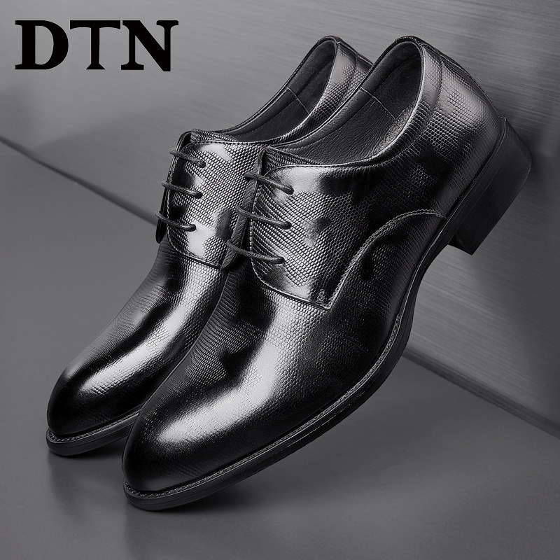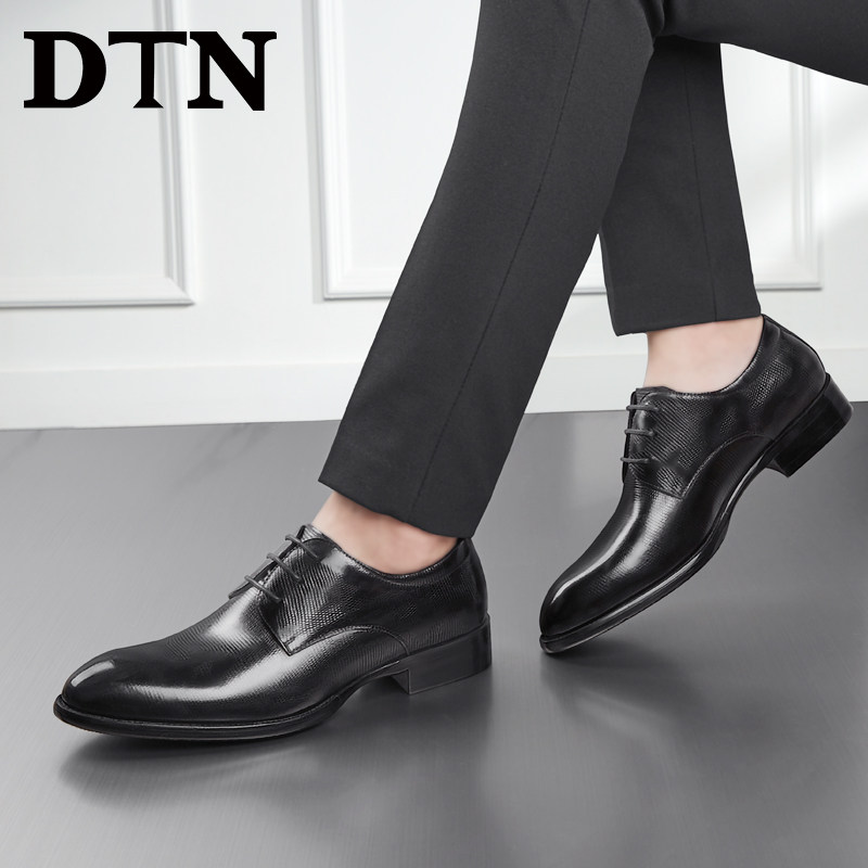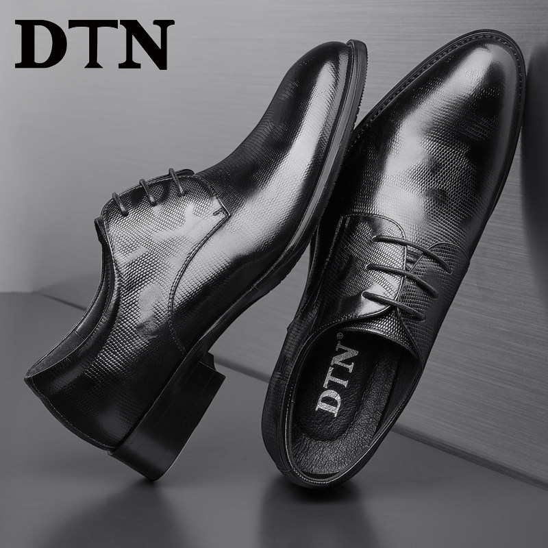 DTN men's shoes men's formal leather shoes men's leather plaid Korean version business casual British black work shoes men