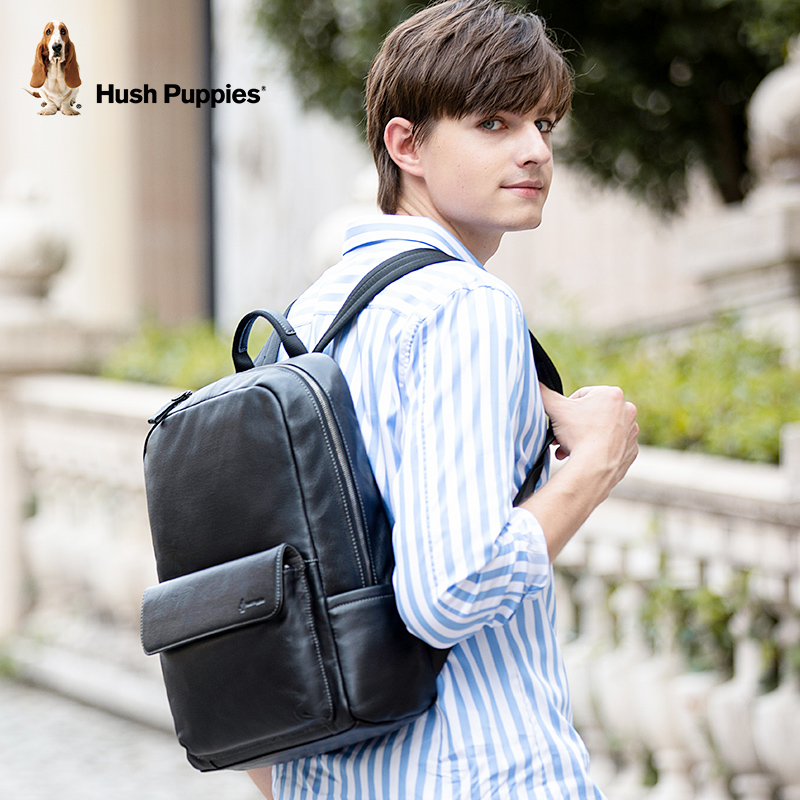 The Huffle Walker Men's Backpack Genuine Leather Casual Large Capacity Backpack Front Layer Cowhide Business Computer Bag Travel Tide Bag