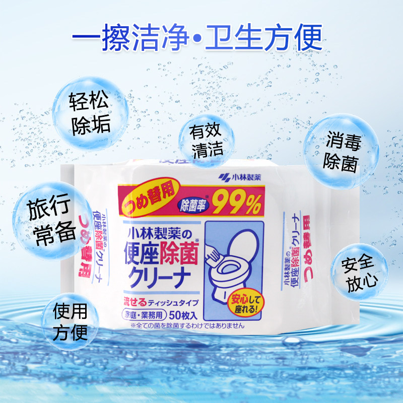 Japan imported Kobayashi pharmaceutical toilet toilet seat poop circle cleaning wet tissue sterilization portable 50 pieces replacement