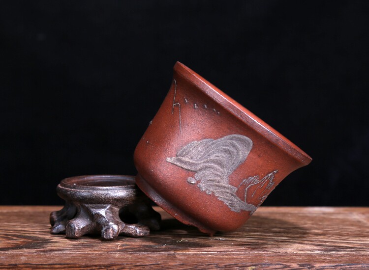 Exquisite purple sand small flower pot Republic of China Whole Handmade Flower Pots Antique Collection Purple Clay Clay Painted Flower Pot special price