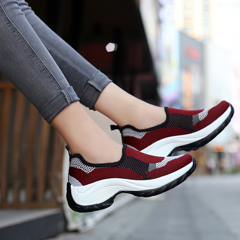 Summer Moms Shoes Soft-bottom Women Comfort Middle Age Bodybuilding Shoes Women Shoe Cover Feet Casual Shoes Mesh Slopes Heel Thick Underfoot Rocking Shoes