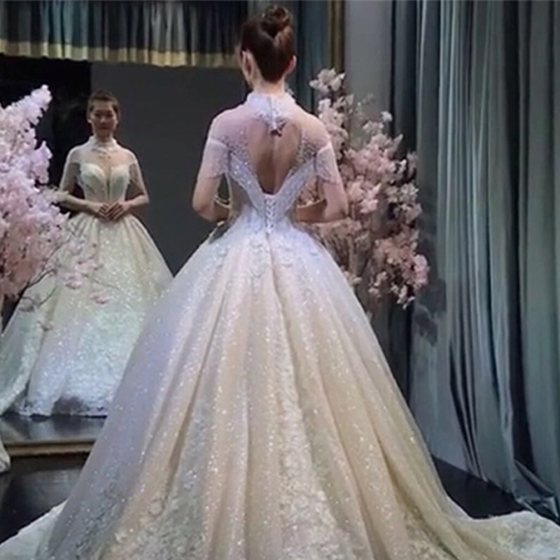 Main wedding dress 2020 new temperament long tail luxury court European style bride wedding fantasy forest department winter