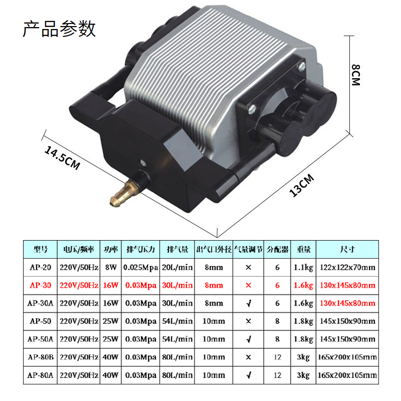 AP-10 air pump (not adjustable) AP-10 air pump (package) AP-20 air pump single machine (not adjustable) AP-20 air pump (package three with 6 gas stone 6 stop flow