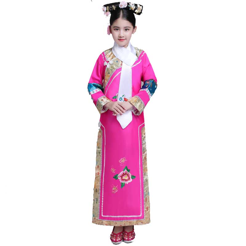 New children's and girls' costumes Qing Dynasty palace Gege Princess Huanzhu Gege Zhen Huan Manchu performance costume flag clothing