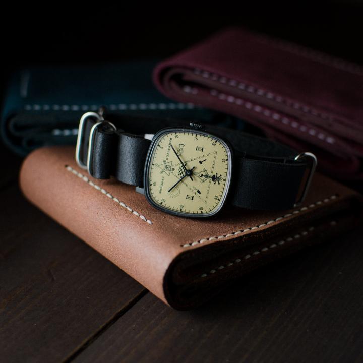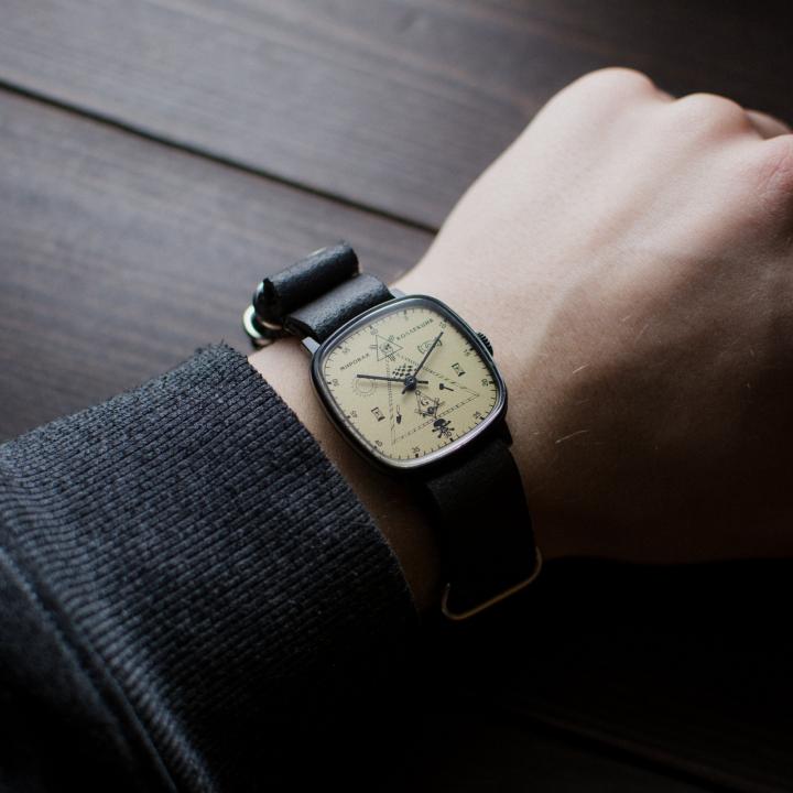 Overseas Masonic ◇ vintage Masonic square mechanical leather Soviet men's watch watch