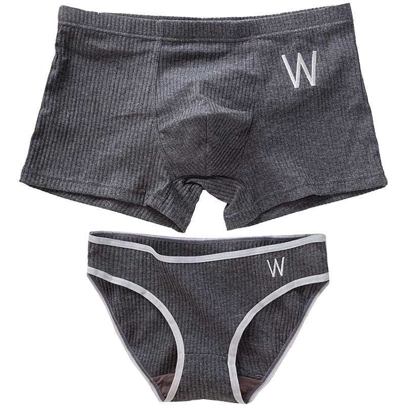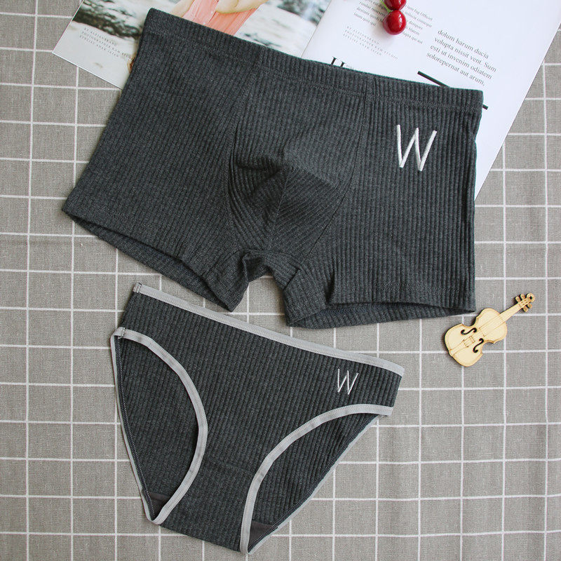 Couple underwear pure cotton underwear suit pure color embroidered striped men flat female triangle personality adult