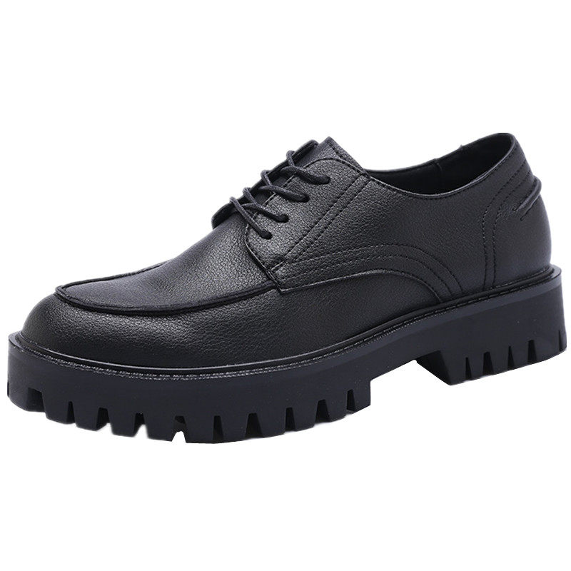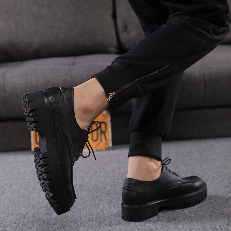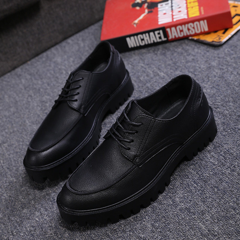 Black handmade men's casual leather shoes men's Korean version lace up soft leather men's local youth work society small leather shoes men