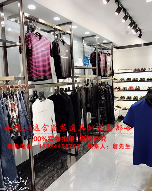 Men and women Clothing Shop Upper Wall Hanger Racks Stainless Steel Black Titanium Wire Drawing Gold Leaning Against Wall Landing Combined Display Shelf