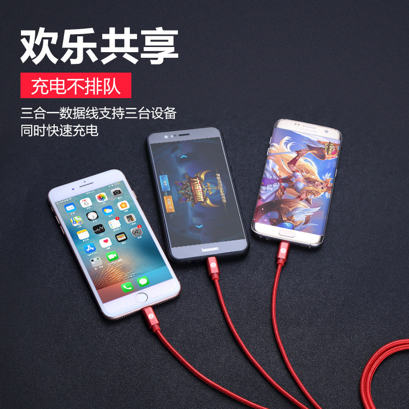 Biaz data cable three-in-one Apple Android mobile phone charging cable one-to-three fast charge multi-function two-in-one