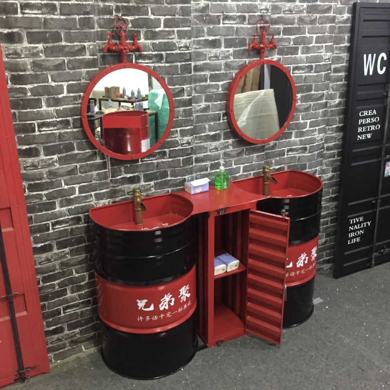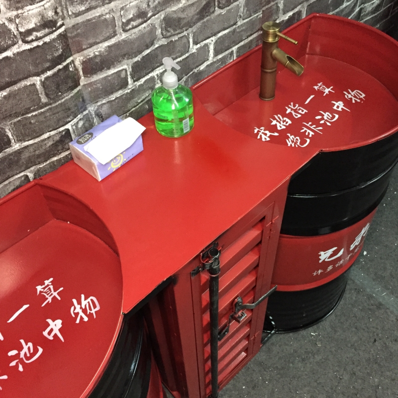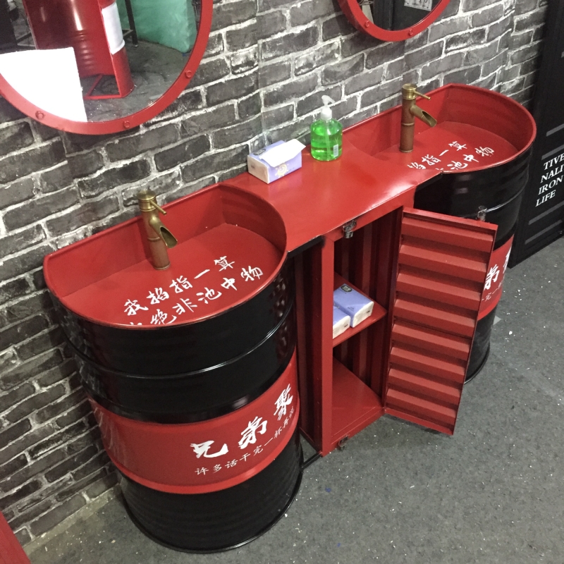 Industrial wind retro wash basin Personality creative bar sink Oil barrel column basin cabinet Floor-to-ceiling integrated
