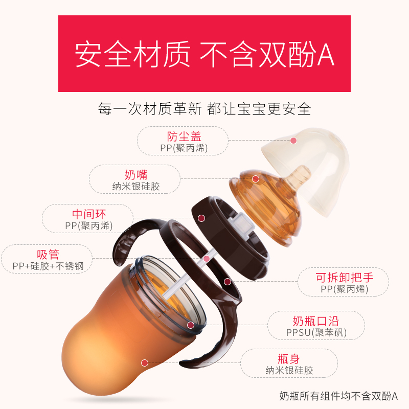 Silicone bottle big baby full soft wide mouth 0-6-18 months newborn baby PPSU drop resistant ring milk weaning artifact