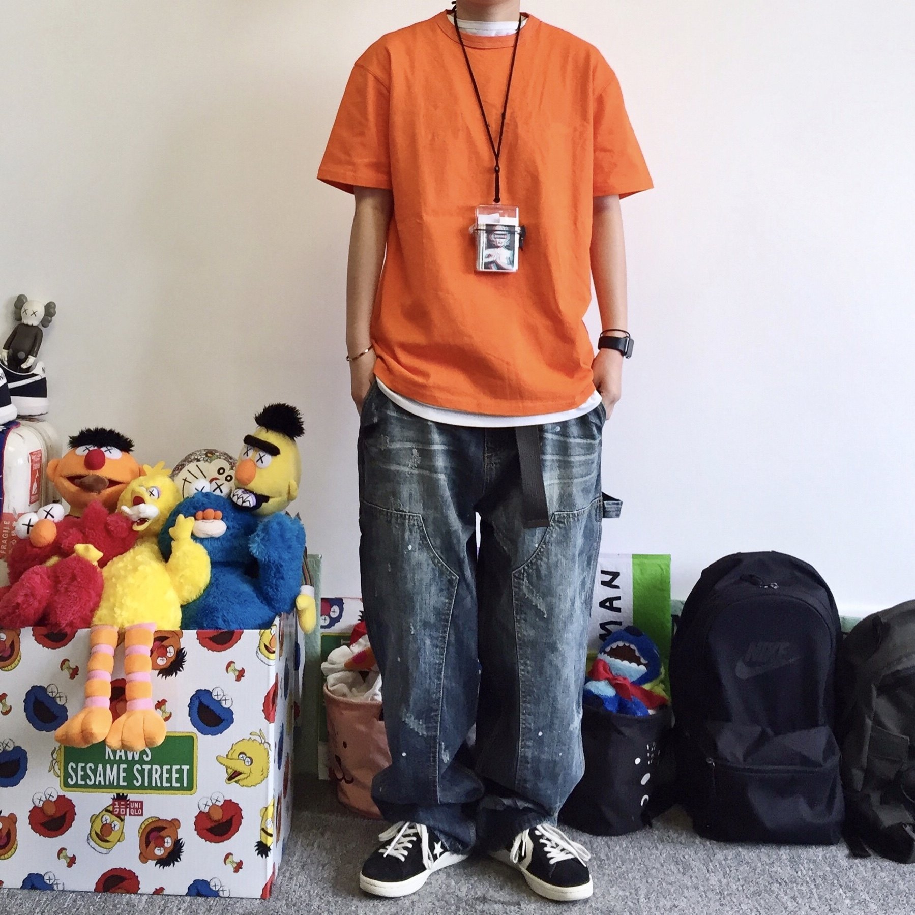 NGOARMY B07 three-moto-pin 90% jeans wash water damage splicing loose multi-bag day system cityboy