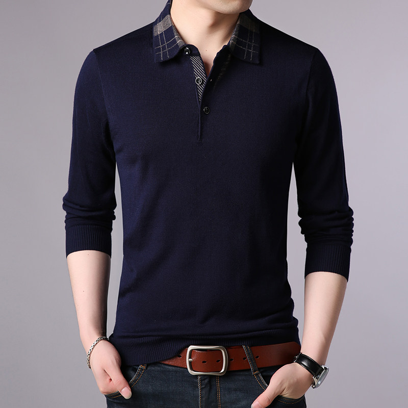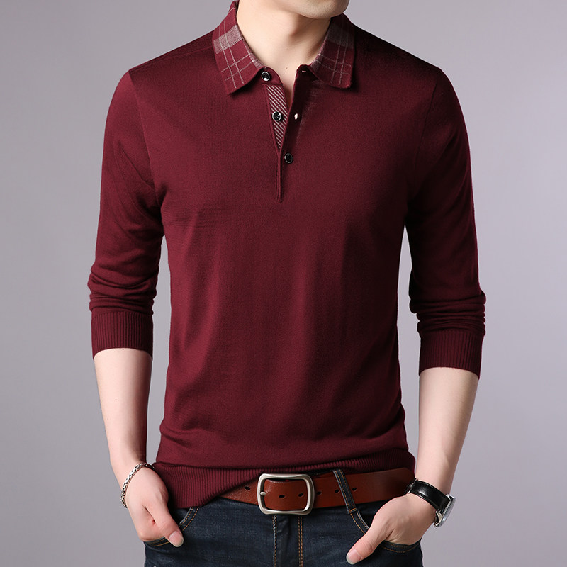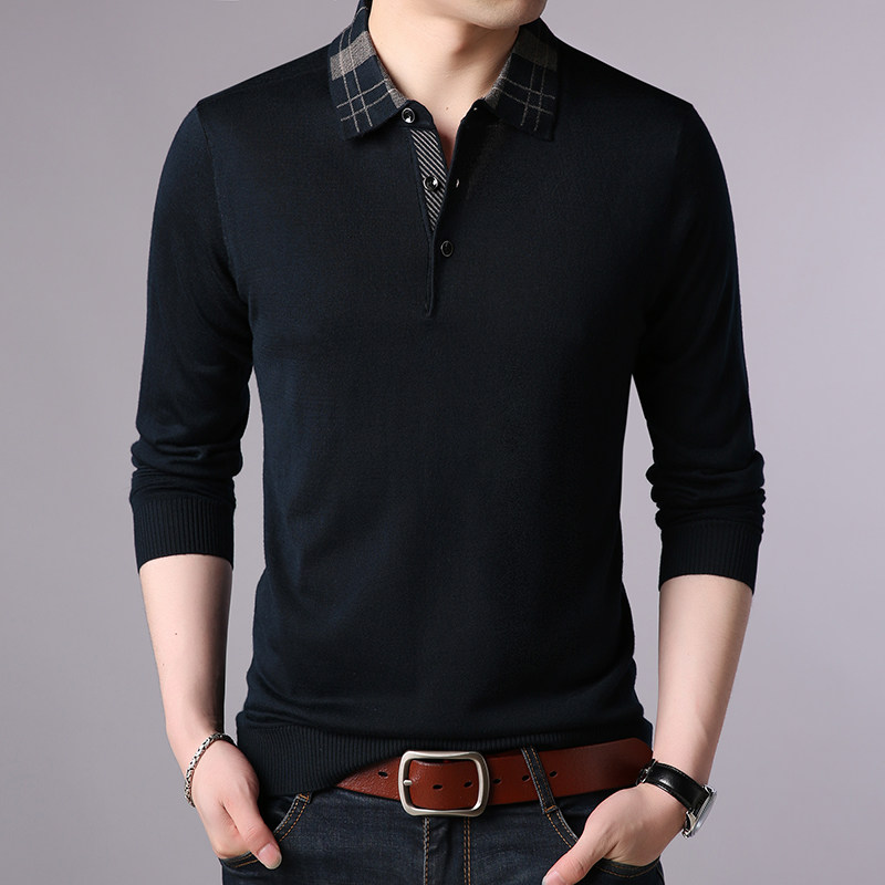 Giku goat new men's turn-collar fall Dad clothes middle-aged sweater slim fit for a long sleeve T-shirt for men