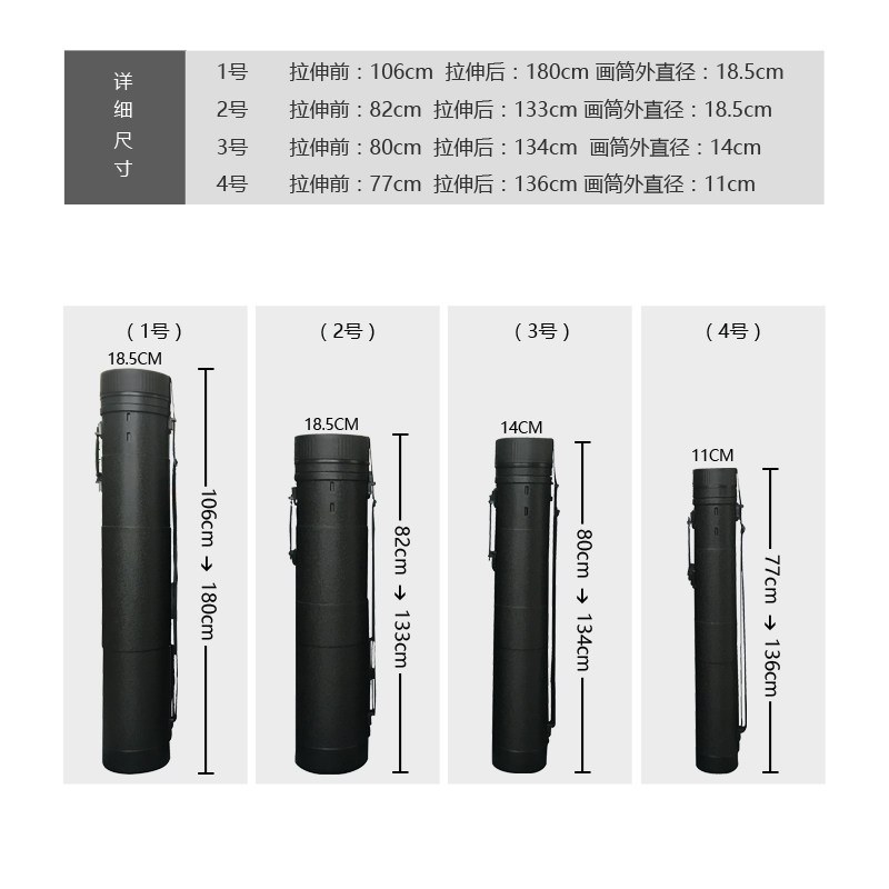 Oversized black plastic leather pattern non-slip portable waterproof retractable painting barrel collection poster painting shaft dustproof