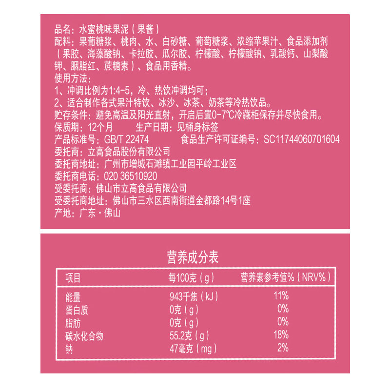 Xinxiani Peach Puree Jam Wholesale Concentrated Juice Beverage Milk Tea Ligao Baking Raw Materials 1 36kg