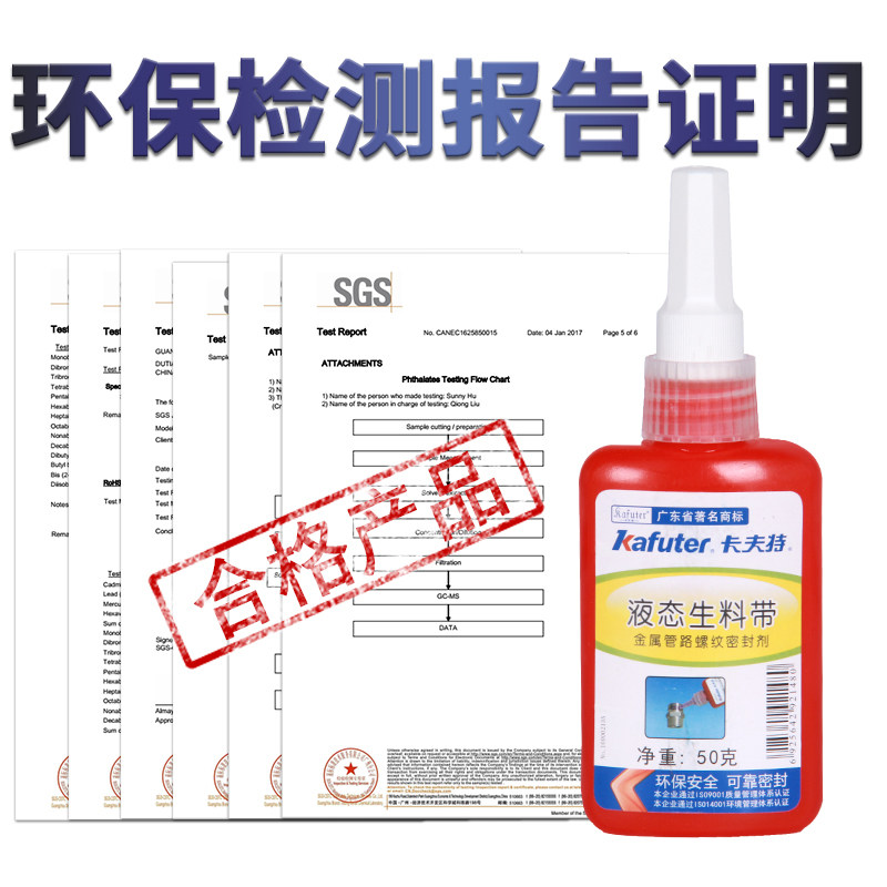 Kafter liquid raw meal with metal thread line sealant resistant to high pressure high temperature resistant fast dry waterproof oil resistant liquid raw material with fire line seal raw adhesive tape screw glue detachable