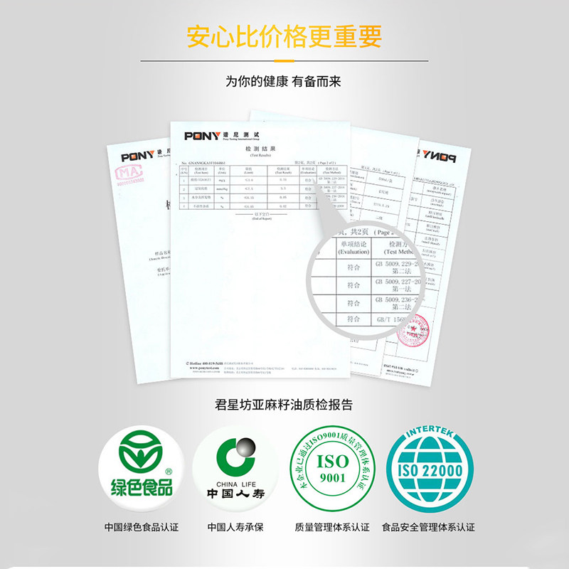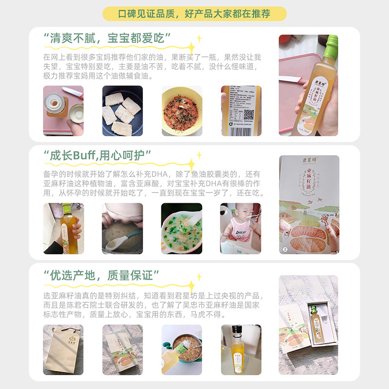 Junxingfang First-class cold-pressed flaxseed oil, sesame oil, auxiliary cooking oil, baby baby stir-fry oil, cooking oil 230ml