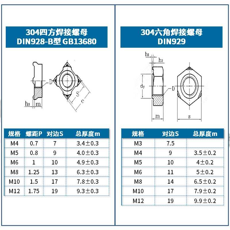 M4 (iron hexagon to the side 10 with welding points) 100 M4 (iron hexagon to the side 11 with welding points) 100 M5 (iron hexagon to the side 10 with welding points) 10