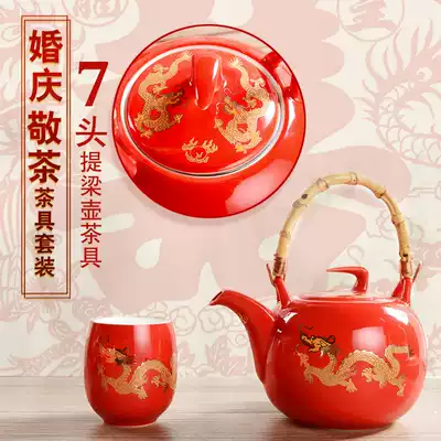 Red Golden Dragon tiliang pot tea cup red wedding wedding tea set wedding teapot wedding household ceramics