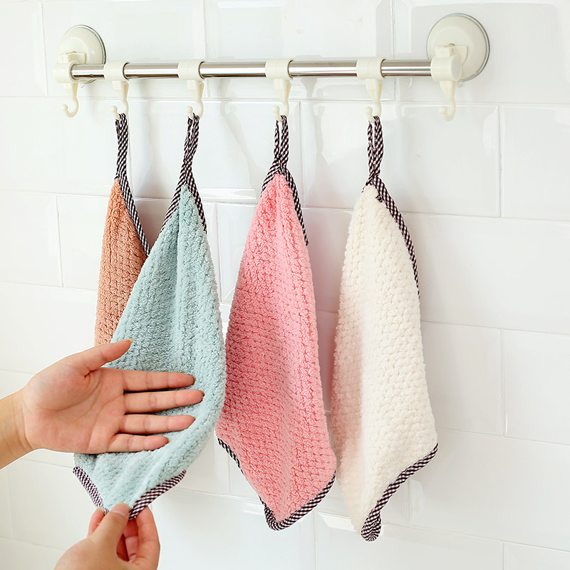 Coral suede not stained with oil dishcloth Kitchen cleaning towels with no water absorption Absorbent Hanging Rag Cleaning Cloth Wipe Hand Towels