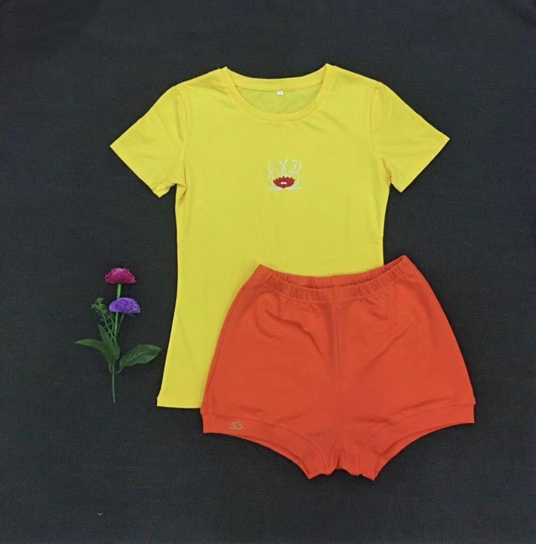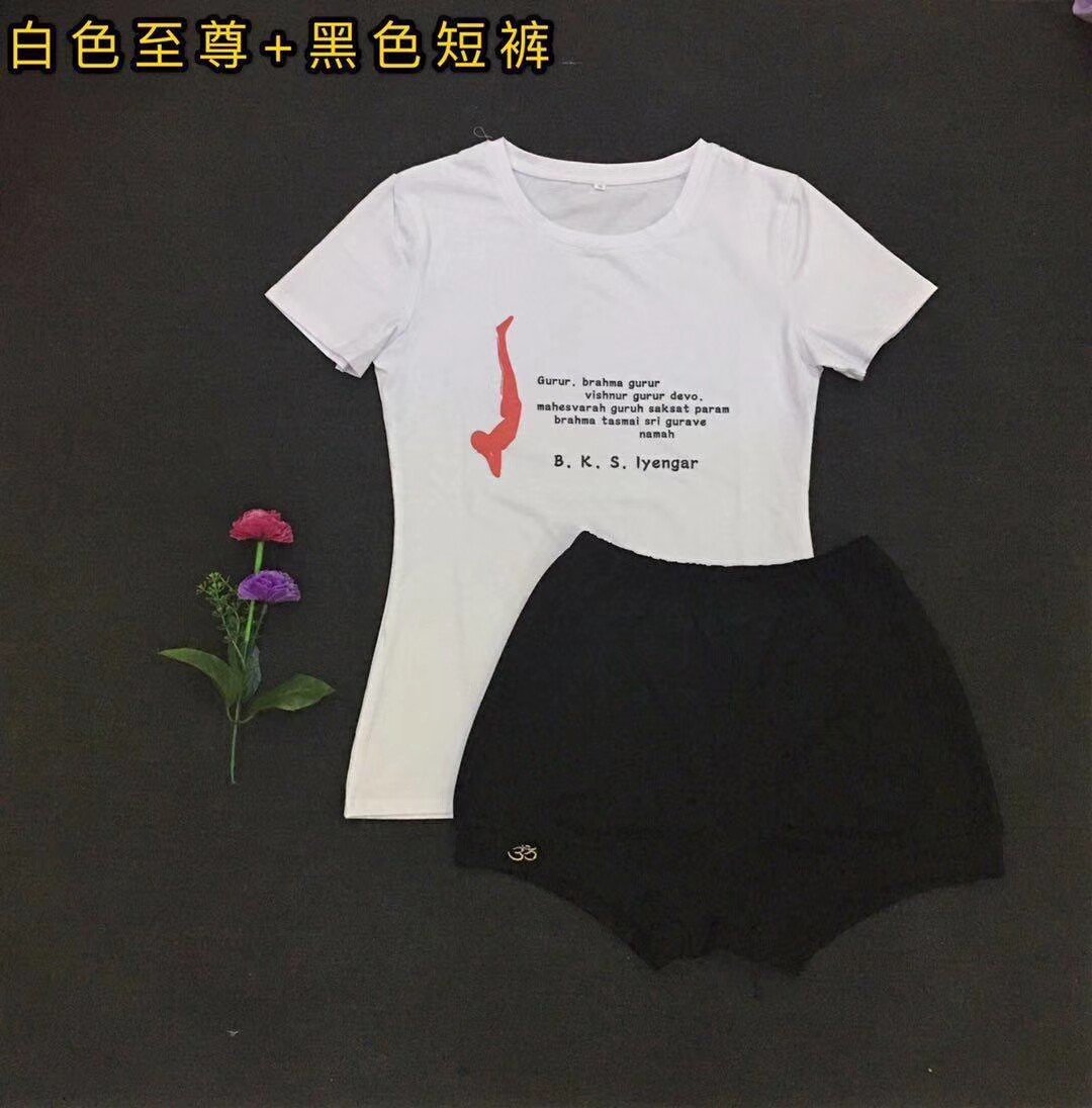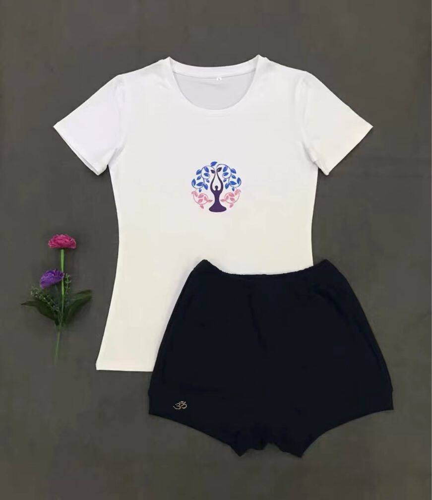 White supreme black pants White OM black pants Burgundy half-moon black pants Green yoga heart Navy blue pants White Mandala flower language Orange pants White Linden rose red pants Black