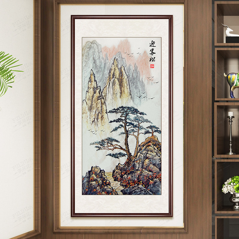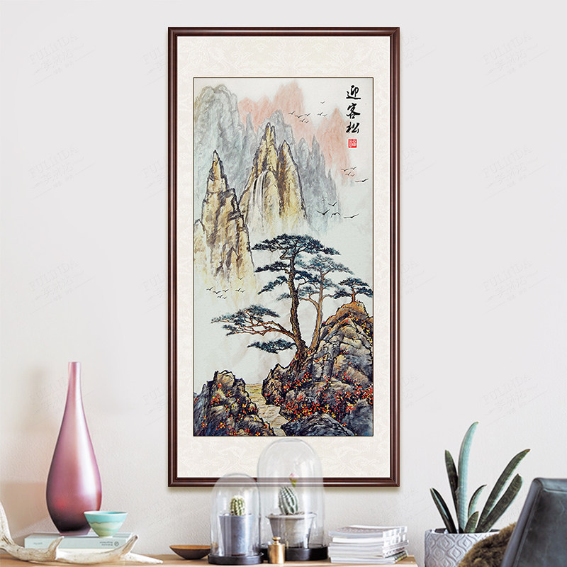 Welcome guest pine cross stitch 2022 new embroidered vertical version living room full embroidered landscape painting Wind view line embroidered yourself 2021