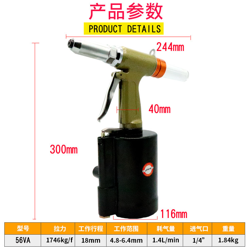 Sea Flying Shark Powerful 56VA Pneumatic Nail Pull Gun Two-claw Pull Rivet Gun Pull Rivet Gun Clamp 4-4 8-6 4mm